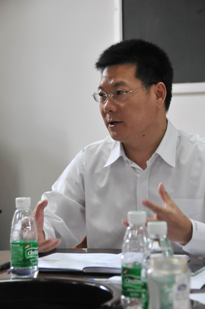 与会老师们对英语语言文学学科建设与发展纷纷发表了自己的真知灼见。欧阳护华教授认为,课程的设置应从本科知识输入型向能力输出型发展,教师发展应避免个人主义太强的趋势,教师应将自己最精华的部分进行再整合;王虹教授表明本次座谈会很重要,她认为研究生教育应突出研究生课程的研究性,开设的课程应重阶段和主题,如18世纪英国文学、女性小说等;管建明老师提出应当加强硬件建设,如图书资料的建设,学科研究方向应注意传统和现代、中心和边缘的融合;吴旭东教授指出在学科建设中人才培养是关键,个人的潜力应当整合成独特的力量,同时教师应加强研究和教学的结合;王友贵教授则提到在教学的每个阶段(即一,二,三年级),应明确究竟要培养学生什么能力,这样才能有的放矢,并应当鼓励老师在科学研究中的创新性发展。