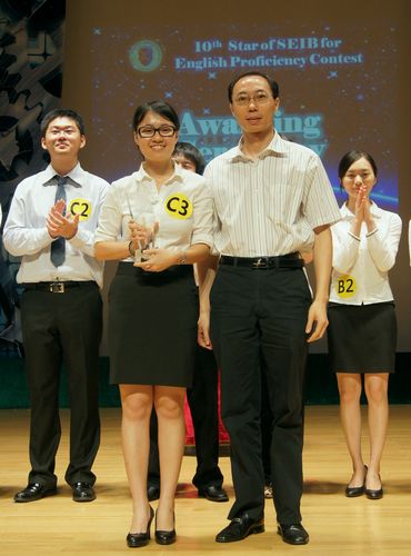 点评过后,便是激动人心的颁奖环节,Venus获得大赛一等奖,同时Caesar队的曾韵儒摘得“商英之星”。至此,第十届“商英之星”英语综合技能大赛圆满落下帷幕。