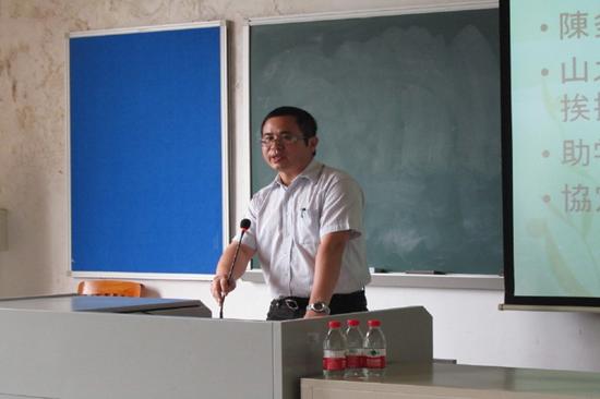 会议正式开始后,陈多友对山下政博和陶庭义的到来表示由衷的感谢,并再次介绍了山九株式会社,指出与山九株式会社的合作有利于中日两国的交流,此外,陈多友对回报社会的山九株式会社致以崇高的敬意。在日本发生大地震之后,山九株式会社能够战胜经济上的困难,不仅帮助日本民众,还继续资助我校日语系家庭经济困难的学生,陈多友对此十分感动。陈多友别有新意的将广州的天气热归结为一件好事,寓意人心的热情,暖入心底。