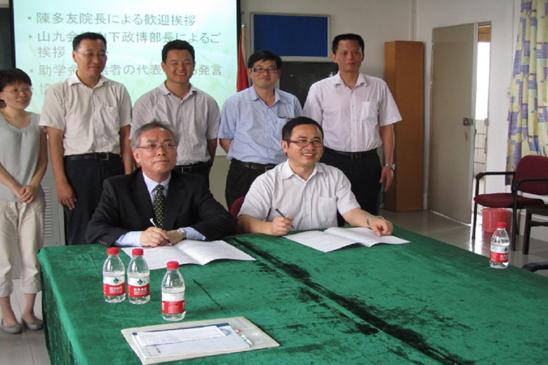 本网讯 6月20日下午,日本山九株式会社与东语学院在1教420会议室签订了第二期“山九育英金”协议,并表示接下来五年将继续资助我校学院日语系家庭经济困难的同学,以帮助他们顺利完成学业。