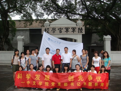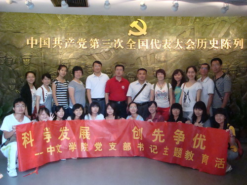 本网讯 6月12日,中文学院党委开展了以“科学发展、创先争优:永恒的主题,永远的追求”为主题的党支部书记主题教育活动。在本次活动中,中文学院党委书记李和民、副书记李江、党委委员郭德茂、副院长魏慧斌以及全院师生党支部书记,共同参观了中共三大会址纪念馆、黄埔军校和广东科学中心。