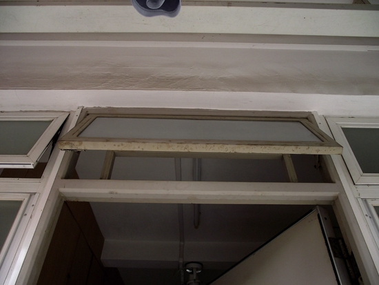 门口上窗敞开易被盗贼利用,用铁丝等工具可钩开门锁,建议学生上双重锁