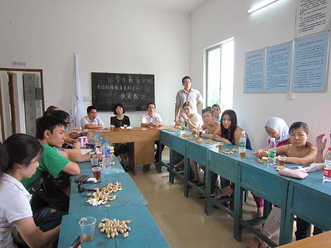 探访团成员一行在村委会办公楼二楼,与村委会书记何创环进行了简短的交流。会议伊始,负责学生工作的王一仟老师针对中国及广东省的扶贫计划为同学们进行了详细地介绍。通过王一仟的介绍,同学们对中国当代国情中的扶贫计划有了进一步的了解。他们踊跃地提出问题,我校驻村干部包生耿针对我校的扶贫情况,对同学们的提问进行了解答。