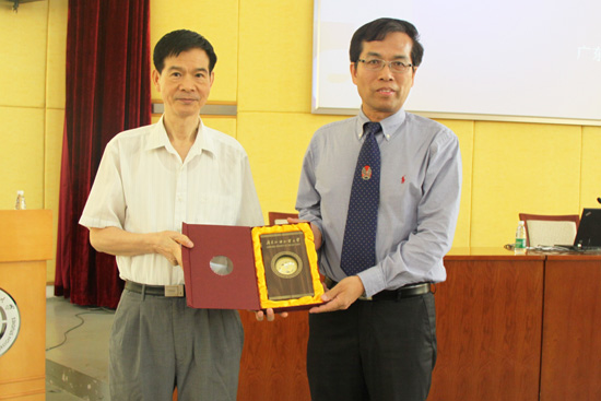 我校校党委副书记金耀观、人事处副处长谢文新、新闻学院副院长何国平以及新闻学院老师和学生参加了讲座。首先,金耀观为张赞国赠送了纪念品。随后,何国平对主讲人做了简单介绍,讲座正式开始。