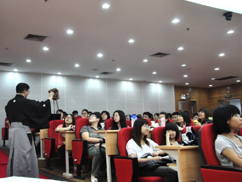 最后,安田登以“能”的形式演绎了明治时期著名日本作家夏目漱石的作品《梦十夜》,他时而沉静,时而激愤的演绎感染了在场的同学们,赢得了热烈的掌声。