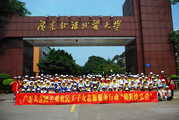 我校团委青年志愿者行动指导中心承担了本次举办的第七期“朝阳快乐营”志愿者组织工作。除了在省博物馆的活动项目和参观城市新中轴——花城广场之外,我校志愿者还带领农民工子女参观了广东外语外贸大学、观看最新热门的电影《加勒比海盗4》,并走进广东民间工艺博物馆陈家祠,充分领略岭南文化。