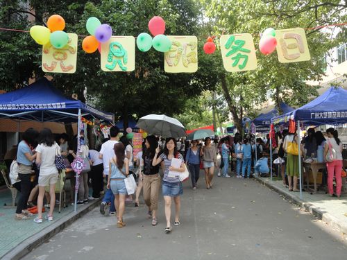 本网讯 5月26日下午,由商英学院学生党建工作小组举办的“五月党风暖心怀”学生党员大型服务活动日在广外北校相思河畔举行。此次活动吸引了众多同学前来享受商英学生党员“一条街”的服务。