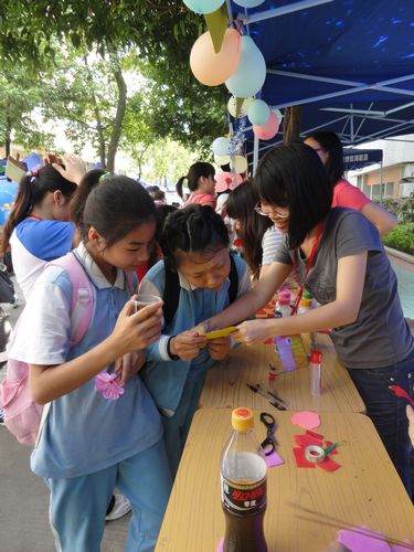 在本次活动中,人气最高的是商管4班的“DIY父亲节礼物”和法英10班的“消暑透心凉”这两个摊位。“DIY父亲节礼物”主要分为两大环节。在第一环节“‘纸’因有你”中,工作人员现场教授折纸技巧,精致的手工作品吸引了不少同学驻足观看。而第二环节——“画出‘心’意”则俘获了许多前来参观校园的小朋友的心。这些小朋友来自中山小学,是商英学院“三下乡”活动支教的学生。工作人员将网上收集的画作打印出来,同学们用画笔亲手为父亲准备一份别出心裁的礼物。而法英10班的“消暑透心凉”摊位面前同样是人头攒动,活动现场热闹非凡。该摊位向同学们免费提供各种花茶,同时,工作人员现场讲解各类花茶的功效,为同学们提供消暑小秘方。在采访中,同学们对该摊位的清香花茶赞不绝口,同时,他们也赞扬了学生党员热情细致的服务。
