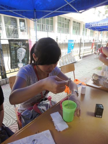 在活动中,商务3班、商管2班和国贸8班分别设置了清洗银饰、清洗眼镜和清洗键盘这三个摊位,为同学们提供“焕然一新”的服务。清洗银饰摊位针对广外女生多的实际情况,为女生们提供清洗首饰的便捷服务;清洗眼镜摊位则为眼镜一族带来了焕然一新的“镜界”;而清洗键盘摊位为同学们提供了舒服的打字环境。这些摊位贴近生活实际,吸引了众多同学前来接受服务。在各摊位中,学生党员认真细心地为同学们清洗首饰、眼镜和键盘的污垢,展现党员为人民服务的精神。
