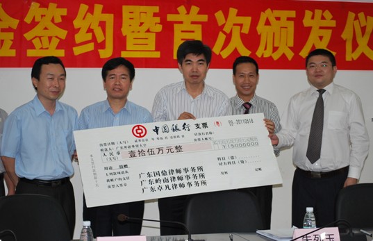 “律治”助学金是为了支持遵守学校各种规章制度、学习刻苦但家庭经济困难的学生顺利完成学业,为支持法律硕士教育中心教育事业发展,由广东国鼎律师事务所、广州岭南律师事务所、广东卓凡律师事务所三家律师事务所共同捐资在我校设立的。