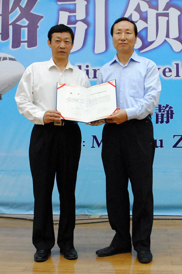石佑启向刘子静颁发MBA教育指导委员会委员聘书