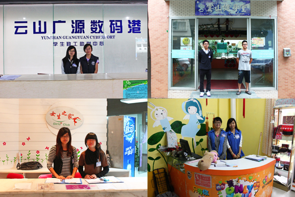 成立于2003年的学生勤工助学中心,下设行政部、财务部、人力资源部、公共关系部等职能部门,创建了云山咖啡屋、云山书屋、云山健身室、云山创业园、云山广源数码港等“云山”品牌系列勤工助学基地,常年为学生提供超过1200个勤工助学岗位。