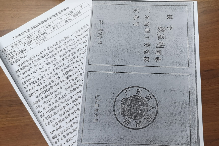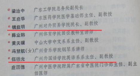1985年,时任原广州对外贸易学院院长、副教授钱益明(1928-2012)(后晋升为教授),时任原广州外国语学院英语系主任、副教授伍谦光(后晋升为教授),被广东省人民政府评为“广东省职工劳动模范”。