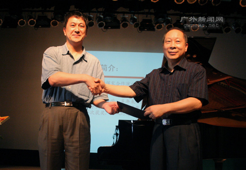 李淇教授一到场,同学们就报以热烈的掌声。隋广军现场给他颁发了我校艺术学院客座教授聘书,这也是我校艺术学院聘请的第一位客座教授。