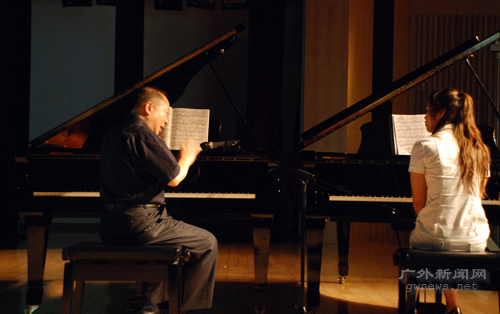 我校师生也献上了自己的表演,艺术学院06级钢琴专业学生欧珏表演《G小调前奏曲》。演奏结束时,李淇教授指出欧珏的现场演奏技术上存在一定的问题,其中两个该弹重音的地方却停顿了,而且有的地方使用的力道也不对。