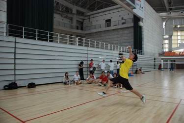 男单赛场上演鱼跃扣杀