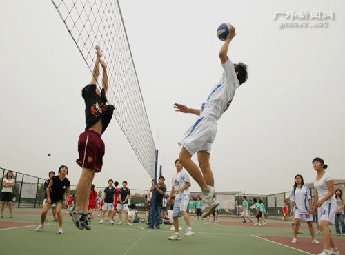 本网讯 5月18日下午,08年“新生杯”排球赛八强争夺战在南校区排球场正式打响,八强队伍捉对厮杀。最终,经贸学院、信息学院以及法学院分别以2:1的同样比分击败了东语学院、中文学院和管理学院,涉险过关。国际学院则以2:0轻取商英学院,成为四强中仅存的一支北校队伍。