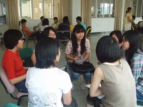 在“我的压力圈”环节,阎茹让在场的30位同学分成4个小组,分组分享各自面临的压力。毕业工作、暑假实践工作的申请、学习与学生工作的平衡、考研、人际关系等成为大家反映普遍的问题。随后阎茹进行了一小段的总结,并指出了部分压力的根源,并给出了一些可行的建议。