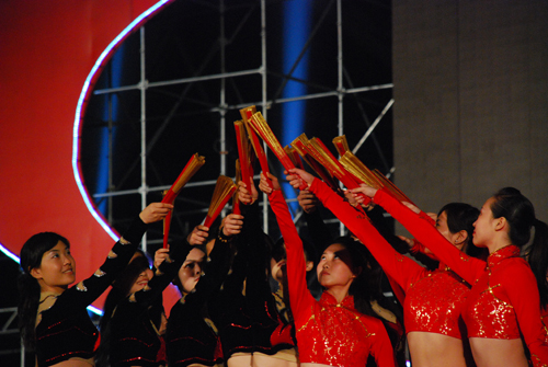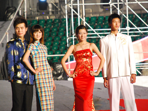 在展现各大高校独特文化的“校园风”节目中,我校模特队24名成员,配合着悠扬欢快的舞曲,身着各式民族服装,潇洒地登上T台排练。同学们手持笔、画、相机等道具,在台上穿梭游走,展示我校学子丰富的文化休闲生活。酷酷的造型引来台下观众一阵阵尖叫。
