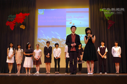 本网讯 4月24日晚,我校B8报告厅内11位“导游”闪亮登场,他们说着纯熟流利的英语,带领“团友”们穿梭在广州的大街小巷。在这里,第三届“广之旅”杯英语导游大赛吹响了争夺决赛的号角。
