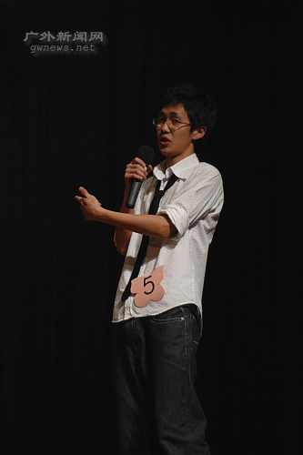 3号选手别出心裁,在解说中插入一段视频。只见视频中,3号选手一副专业旅游主持人的派头,带领着“团友”们在大学城博物馆穿梭。最后,3号手把酒杯优雅地邀请观众共旅,以“Good Night”结束了一日行程。