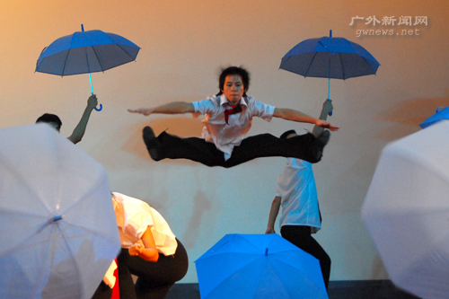 开场舞蹈《蓝天》男主角的连跳引来观众连连喝彩