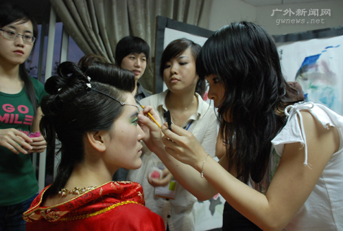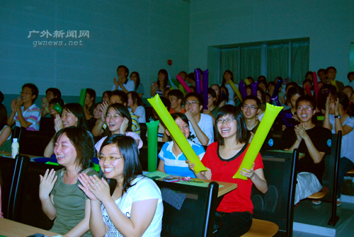 无论是透明的玻璃面具,还是颇具中国风的大赛海报,还有史上少见的大型海报系列,都吸引了广外学子的眼球。DV展播,演员走秀,还有主持人与观众的互动,都很好的调动了会场气氛。