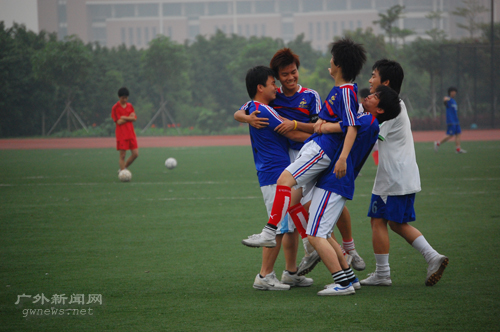 4月13日下午,广外“新生杯”足球赛四强赛燃起战火。新闻学院凭借10号曾宇航的点球1:0淘汰信息率先晋级。随后,经贸同样依靠10号张晓波终场前的进球以1:0击败商英。双方将在4月17日展开南校冠军争夺战。