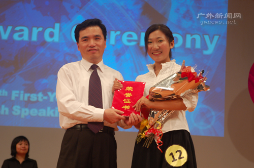 12号李玥霖以流畅的口语和自信的台风赢得了评委的认可,一举包揽了一等奖和最佳风采奖,成为当晚最大的赢家。持续一个多月的商英学院第六届“Let me try See me shine”新生英语口语大赛在闪烁的荧光棒、鲜花、掌声中落幕。