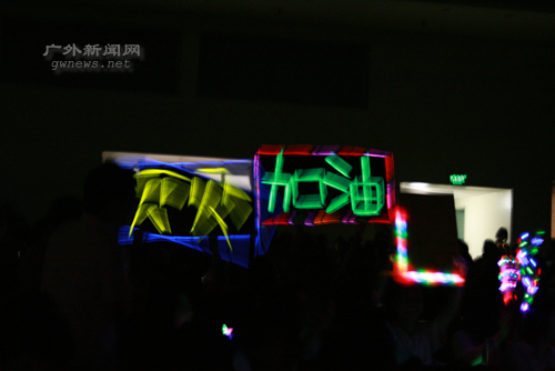 随后12位决赛选手闪亮登场,这时从舞台一角突然跳出吉祥物兔八哥,它一面表演着滑稽笨拙的动作,一面将12位选手一一介绍给观众。新奇的介绍方式令亲友团热情高涨,挥舞着打气棒呐喊助威,现场一片欢腾。