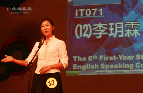 选手一一亮相后,比赛进入了紧张的命题演讲环节。值得一提的是,选手在演讲完毕后都要回答评委提出的问题,这种方式不仅考验了选手的口语、听力,还考虑了选手的应变能力,大大提高了比赛的难度。
