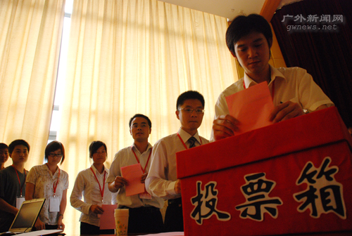 与会人员在投票选举经贸新一届党委委员