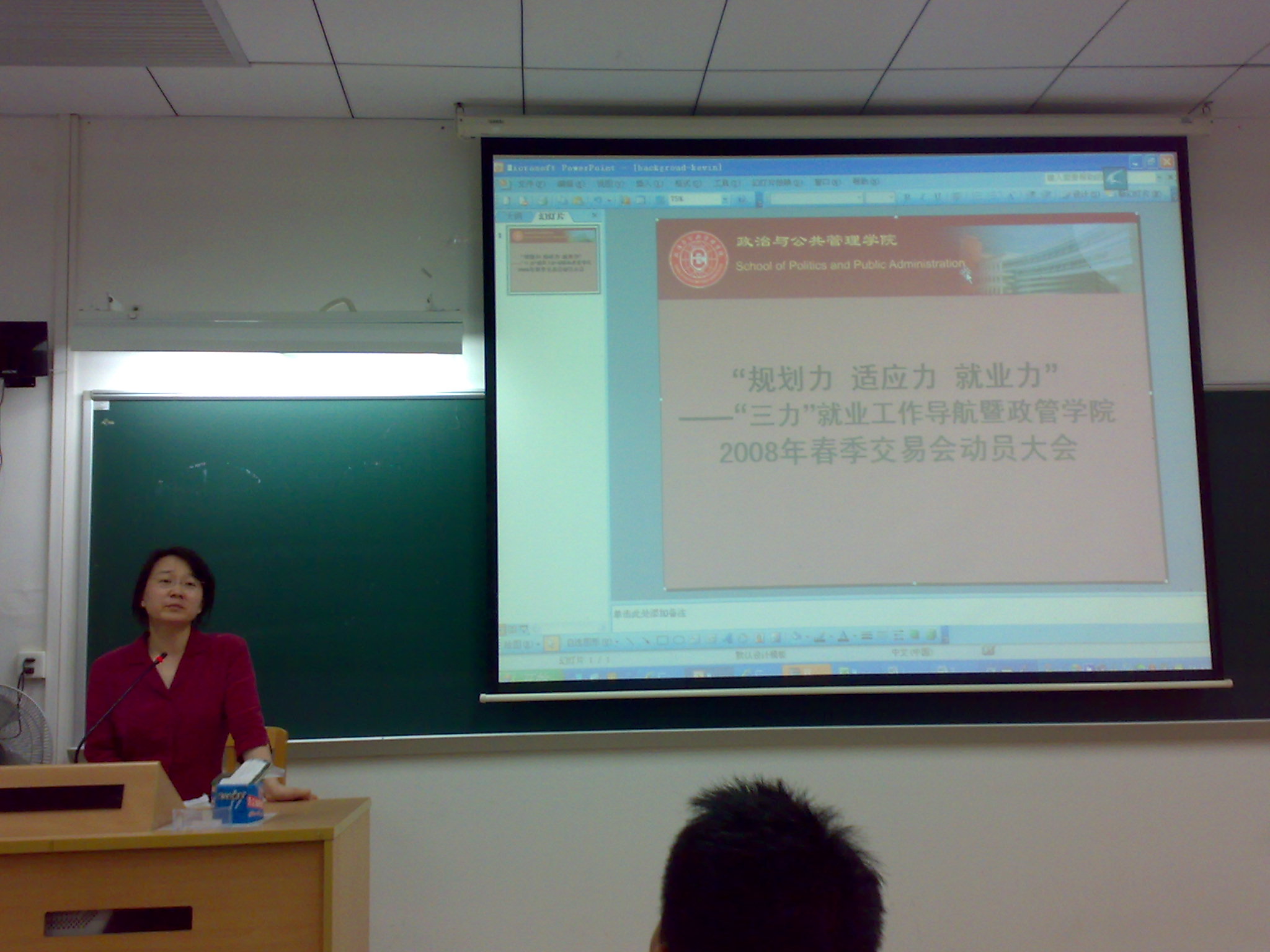 本网讯 4月8日晚,政治与公共管理学院在南校区教学楼F107召开2009届毕业生“规划力、适应力、就业力”——“三力”就业工作导航暨政管学院2008年春季交易会动员大会。政管学院党总支书记范静静、副书记麦培年出席会议。会议由麦培年主持。
