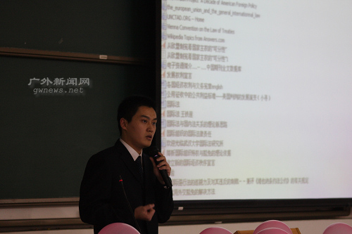 作为最年轻的“学术之星”,来自06国际经济法2班的汪洋丝毫不显怯场。他从自己刚进大学的普通与迷惘说起,直到加入了学院的辩论队,成就了他的梦想。他表示,在比赛中体会到了同伴的重要性,感受到了友谊的珍贵。