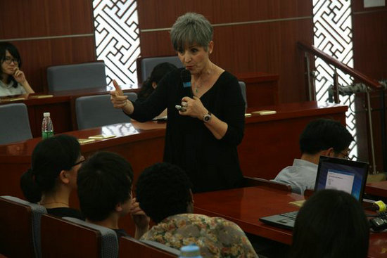 在问答互动环节,Virginia Trigo与彭轶丽交换了对于本土化创新的观点,探讨了本土化创新遇到的问题,并且耐心回答了学生的问题。