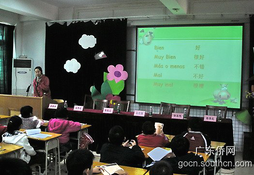 本网讯 2月23日到29日,这短短七天对06西班牙语班的三名学生来说不仅仅是冷风瑟瑟的一周,而更多的是一次充满乐趣和回忆的体验。在这七天里,西语学院06西班牙语班的黄婷、胡亮兼和杨倩欣参加了广州市花都区巴拿马侨胞子女西班牙语学习班的教学活动。这个特殊的西班牙语学习班是由广东省侨办与花都区侨务、教育、广东外语外贸大学西班牙语系等部门联合举办的。三位大学生在本次活动中充当了小老师的角色,给花都区24位平均年龄只有十二岁的小朋友上了为期一周的初级西班牙语课。