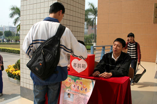 记者于南校教学区A栋楼下的募捐点看到,同学们都十分热心地伸出援手。现场不断有同学慷慨解囊。5块、10块、50块,都是一份真挚爱心。一位大三的男生表示,“几块钱对大家来说可能很少,但如果大家一起努力捐款的话,便可以积少成多,帮助他人重新找回健康。”大家都希望管仙华会好人好福,早日康复。