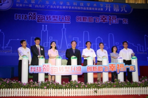 4月27日上午,第五届广东大学生科技学术节开幕式暨第十一届“挑战杯”广东大学生课外学术科技作品竞赛终审决赛在广东工业大学大学城校区体育馆隆重举行。省政府副省长宋海,省教育厅厅长罗伟其,团省委副书记曾颖如,省科技厅巡视员廖兆龙, 省科协党组成员、纪检组长黄梅玉,省学联执行主席刘永佳以及省内部分高校领导出席了活动。我校党委副书记许国彬,团委书记谢秀兰,团委副书记陈兵、国佳及各基层团委书记出席本次活动。