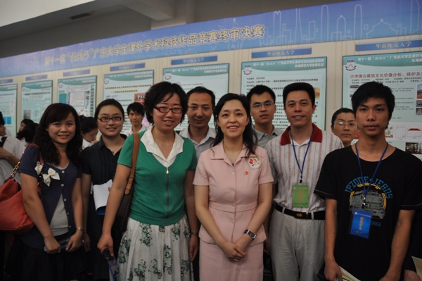 团省委副书记曾颖如和我校参赛师生合影 本届“挑战杯”课外学术科技作品竞赛得到了我校领导的高度重视,我校成立了由学校党委书记隋广军教授担任顾问、分管校领导担任主任、副主任和相关职能部负责人担任成员的竞赛组委会。在整个竞赛过程中,学校广泛利用校园广播、校报、校园网,海报、横幅等传统宣传方式对“挑战杯”竞赛进行宣传。与此同时,还充分利用官方网站、博客、Q群和DV等的创新形式提高“挑战杯”竞赛的知名度和影响力。多种传播信息的渠道提高了比赛关注度,保证了学生参与度,扩大了“挑战杯”系列竞赛的影响。比赛共有142支队伍参加。历时10个月,经过层层选拔,最终确定报送14份作品参加省赛并有两份科技发明作品《嵌入式的迈克尔逊干涉条纹智能处理系统》和《面向房地产行业的热点新闻主题播报自动生成系统》进入了终审决赛,最终获得3个二等奖、9个三等奖的优秀成绩。