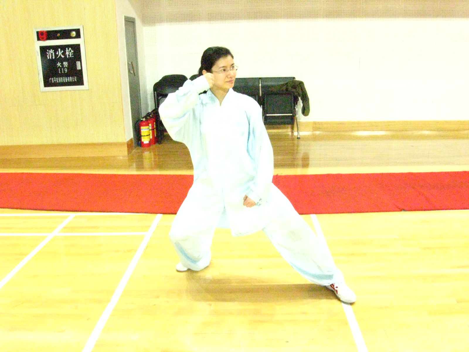 “三人对练”以其刚猛紧凑的特点把比赛引向了高潮。擒、跌、扑、踹、摔用于实战上,其气势之惊人让人叹为观止。由彭新海、雷建源、田宇飞组成的三人对练不负众望,把实战演练得有声有色,最终取得冠军。对练,是要做到真打真战,其中缺不了跌和摔。“摔倒心口都痛了,但打得越真越爽。”被称为偶像的雷建源深有感慨的说,“比赛很讲战术,其中省体力很重要。”比其他成员低两届的田宇飞说:“刚开始还慌呢,打着打着就投入了。”末了,还补上一句:“还是第一次喊那么大声。”平时最为刻苦的彭新海基本功扎实,打起更是潇洒大方。其他队员笑话他:“一打起拳,就把师妹们全吸引了。”