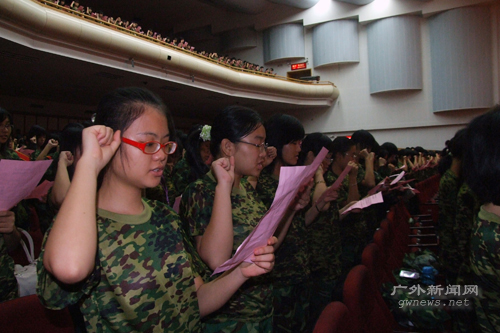 2003年是广外新生正式军训的第一年,新生军训女生无需剪短发,男生不许蓄长发。也许最令众多女生欣慰的是教官感言:广外女生不比男生差。