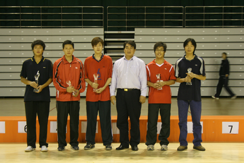 本网讯 12月28日下午, 2007年广东省大学生排球联赛在我校南校区体育馆落下帷幕。经过五天的激烈角逐,华南师范大学和广东金融大学分获男女高水平组冠军,而广东工业大学则包揽了男女普通组的两枚金牌。中山大学东校区党委书记袁焕标、我校副校长陈子锐、广东省大学生体育联合会副主席孙武出席了颁奖仪式并为获奖队伍颁奖。