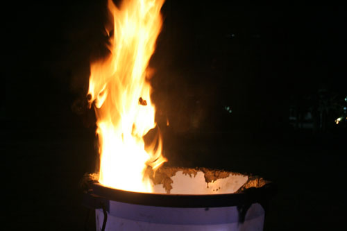 迎来了08年,同学们兴奋地点起了烟花。大家拿着烟花互相打闹嬉戏。兴致当头,一男生将刚燃烧完的烟花扔进垃圾桶,垃圾桶立刻白花花地冒起烟来,桶里垃圾很快燃烧起来。