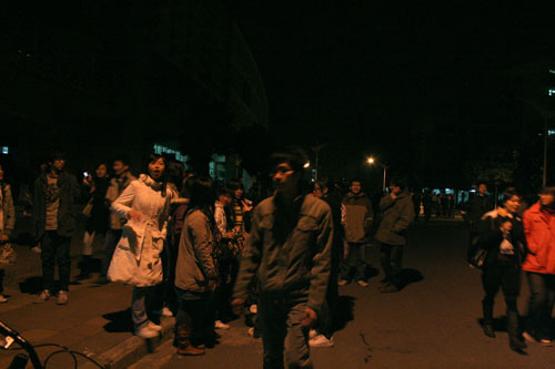 07年12月31日夜晚11点半左右,校道上突然热闹起来。川流不息的人群涌向钟楼广场。虽然天公不作美,但是寒流仍然难减钟楼下兴奋地倒数零点钟声人群的兴致。