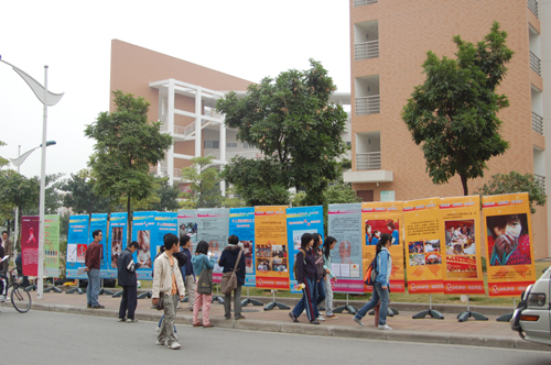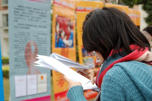 本网讯 12月19日上午“遏制艾滋 履行承诺”预防艾滋病高校巡回宣讲活动在南校区校道上进行。此次宣讲由中国预防性病艾滋病基金会及中山大学公共卫生学院共同举办,在二十所学校进行巡回展览,旨在提高高校学子对艾滋病的认识和预防艾滋病的意识。