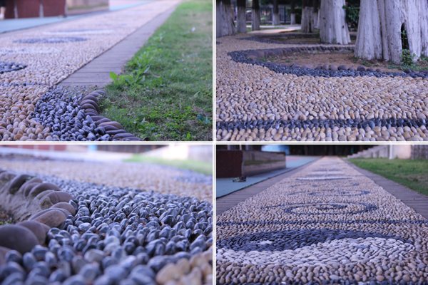 “走过这样崎岖的道路,面前任何路也就显得平坦了。”这恐怕是石子路最深层的寓意。跌宕平仄,赋予了她按摩之功效。脚下痛痒难耐,内心却充满了中国式和谐。众所周知,利用鹅卵石刺激较低穴位,有促进血液循环,消除疲劳的作用。而在广外操场这个清新的环境里,一步一步踩着这些凹凸不平的小石子,也不失意境。“我每次跑完步,都会走上一小会儿,促进血液循环。走完它,也是一个锻炼意志的过程。”东语学院的蔡同学说。诚然,鹅卵石对于脚底的“折磨”,的确需要一份意志支撑着人走下去,也在锻炼着走路人的意志。