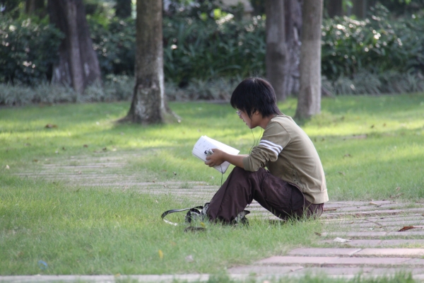 其实,只要你稍微留心,在广外的各个时间各个地点,都有让你心旷神怡的美景守候着你,无论是二教前草坪的那一抹绿,校道旁大树上的青翠欲滴,还是相思河畔那潺潺的流水,抑或是白云山顶那一缭淡淡的云雾……漫步在校园里的每一个角落,你都能发现惊喜。甚至有时候,值得被欣赏的不只那一草一木,在草地上朗读的你,在河畔边放空的他,在窗边看“风景”的我,都是广外校园里的独特风景线。