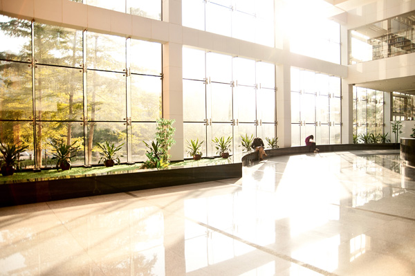 朝阳普照,静谧的图书馆变成了阳光的世界