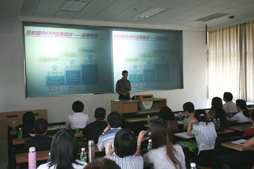 培训会上,来自专业软件公司的培训总监为老师们详细讲解了企业信息化建设的现状与前景,分析了高校为适应这一趋势在人才培养特别是学生的实验、实训方面应采取的对策,演示了相关专业软件、课程和教材,引起老师们的浓厚兴趣。