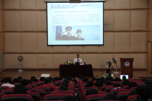 林如山以《房地产行业税源及其管理》为题,从房地产行业税源情况和管理特点、强化房地产税源管理、促进房地产税源长期平稳发展三个方面展开讲座。
